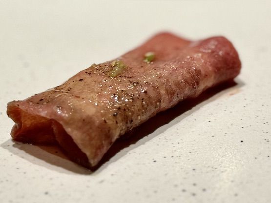 這一餐的主角,是日本三大和牛品牌之一的近江牛。很多時候我們形容和牛,會用「入口即化」這類詞,但在這裡,我反而覺得它是「安靜地軟嫩」。